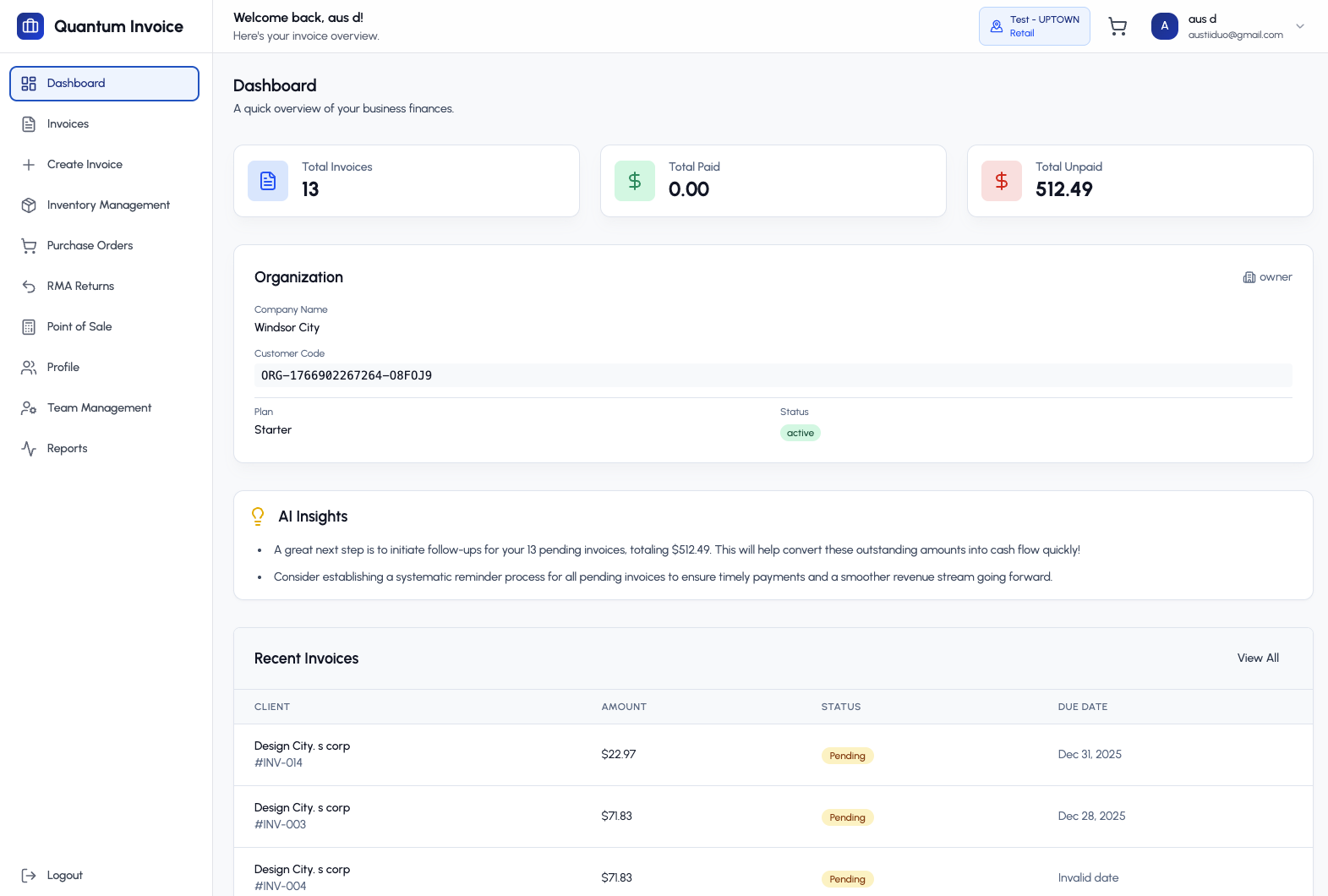 Founder & Chief Executive Officer, 2025 - Present: @ Quantum Invoice